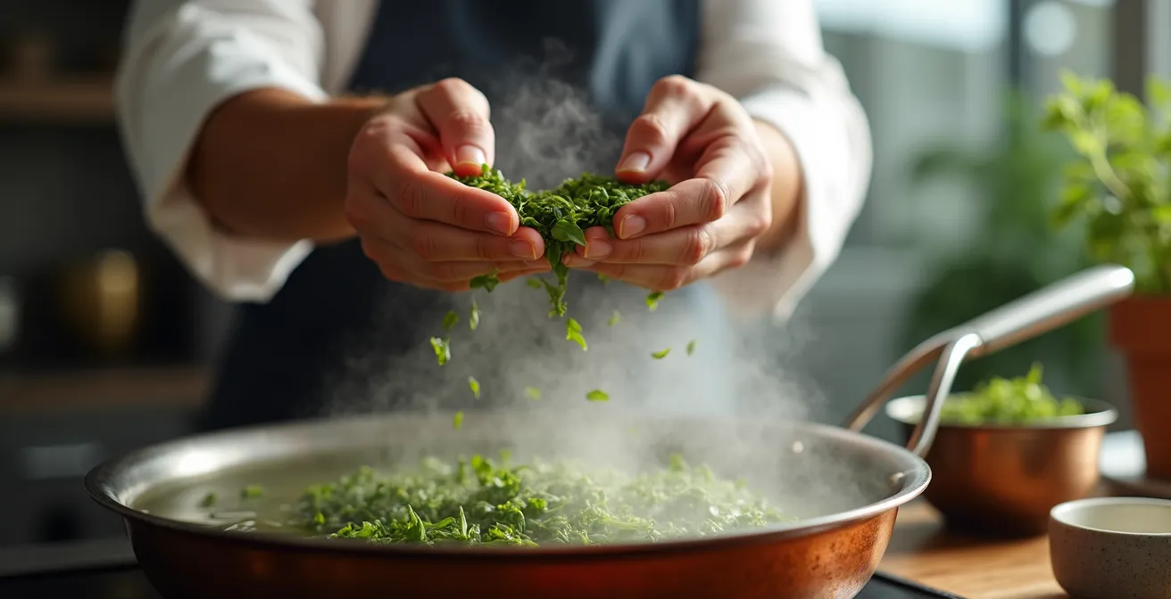 Le timing d’ajout selon les modes de cuisson détermine le résultat final de manière critique. Ajouter du thé en début de cuisson dans un braisage long permet aux arômes de se fondre complètement dans la matrice du plat, créant une complexité indécelable mais perceptible. Ajouter le thé en fin de cuisson préserve sa signature aromatique distincte, le plaçant au premier plan de l’expérience gustative. Entre ces deux extrêmes, l’ajout en cours de cuisson offre des nuances infinies.